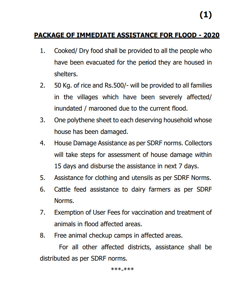 ବନ୍ୟାଜନିତ ଲୋକଙ୍କ ଦୁର୍ଦ୍ଦଶା ଲାଘବ କରିବା ପାଇଁ ମୁଖ୍ୟମନ୍ତ୍ରୀ ଶ୍ରୀ ନବୀନ ପଟ୍ଟନାୟକ ନିମ୍ନୋକ୍ତ ଜରୁରୀ ସହାୟତା ଘୋଷଣା କରିଛନ୍ତି ।