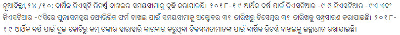 GST -୨୦୧୮-୧୯ ବାର୍ଷିକ ବିବୃତ୍ତି ପାଇଁ ଧାର୍ଯ୍ୟ ତାରିଖର ସମ୍ପ୍ରସାରଣ