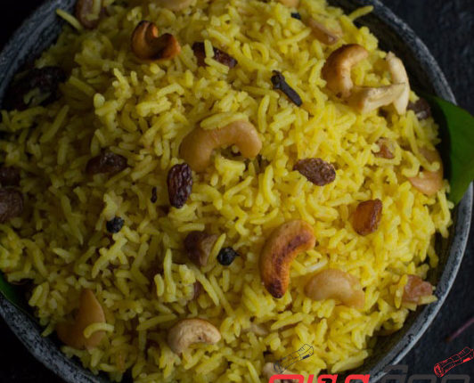 ପ୍ରସ୍ତୁତ ପ୍ରଣାଳୀ – ପ୍ରଥମେ ଚାଉଳ ଓ ମୁଗଡାଲିକୁ ମିଶାଇ ବତୁରାଇ ଦିଅନ୍ତୁ। ଅଧଘଣ୍ଟା ପରେ ତାକୁ ଛାଣି ଶୁଖାଇ ଦିଅନ୍ତୁ। ସେଥିରେ ହଳଦୀ ଗୁଣ୍ଡ ଗୋଳାଇ ଦିଅନ୍ତୁ। ଗ୍ୟାସରେ କଢ଼େଇ ଗରମ କରି ସେଥିରେ ୩ ଚାମଚ ଘିଅ ପକାନ୍ତୁ। ସେଥିରେ କାଜୁ ଓ କିସ୍ମିସ୍କୁ ବ୍ରାଉନ କଲର ହେବା ପର୍ଯ୍ୟନ୍ତ ଭାଜି କାଢ଼ି ଦିଅନ୍ତୁ। ବଞ୍ଚିଥିବା ଘିଅରେ ଡାଲଚିନି, ଗୁଜୁରାତି, ଲବଙ୍ଗ, ଗୋଲମରିଚ, ଅନାସ ଫୁଲ, ତେଜପତ୍ରକୁ ପକାଇ କମ୍ ଆଞ୍ଚରେ ଭାଜନ୍ତୁ। ଏକ ମିନିଟ୍ ପରେ ଛେଚା ଅଦା ଓ ଲଙ୍କାକୁ ଫାଳ କରି ପକାନ୍ତୁ। ୨ମିନିଟ୍ ପରେ ପୂର୍ବରୁ ପ୍ରସ୍ତୁତ କରି ରଖିଥିବା ଚାଉଳ ଓ ମୁଗକୁ ୨ରୁ ୩ ମିନିଟ୍ ପକାଇ ଭାଜନ୍ତୁ। ତାପରେ ଚାଉଳ ଓ ମୁଗ ପରିମାଣର ୨ଗୁଣା ପାଣି ଦେଇ ଢାଙ୍କି ଦିଅନ୍ତୁ। ଫୁଟିଲା ପରେ କାଜୁ, କିସ୍ମିସ୍, ଚିନି ଓ ସ୍ୱାଦ ଅନୁଯାୟୀ ଲୁଣ ଦେଇ ପୁଣି ଢାଙ୍କି ଦିଅନ୍ତୁ। ୧୦ରୁ ୧୫ ମିନିଟ୍ ମଧ୍ୟମ ଆଞ୍ଚରେ ଫୁଟିବା ପାଇଁ ଛାଡ଼ି ଦିଅନ୍ତୁ। ପାଣି ଶୁଖିଗଲା ପରେ ତାହାକୁ ଏକ ପାତ୍ରରେ କାଢ଼ି ଗରମ ଗରମ ପରସନ୍ତୁ।