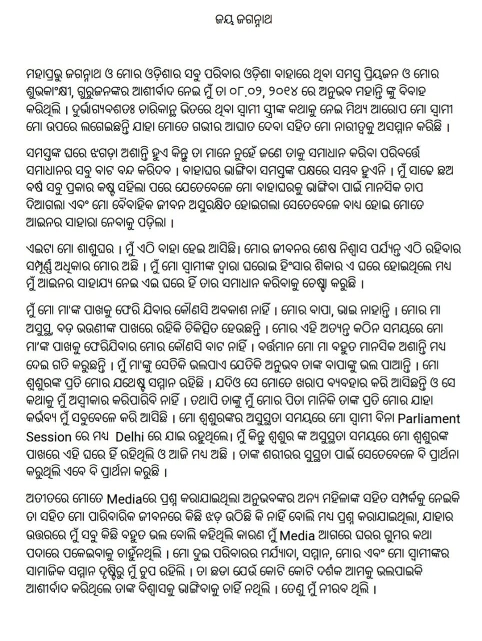 ଅଭିନେତ୍ରୀ ବର୍ଷା ପ୍ରିୟଦର୍ଶିନୀଙ୍କ ଏହି ପ୍ରେସ୍ ବିଜ୍ଞପ୍ତି ଉପରେ ବି ଥରେ ନଜର ପକାନ୍ତୁ ।